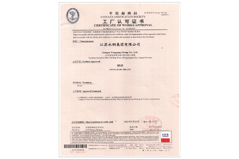 中国船级社工厂认可证书