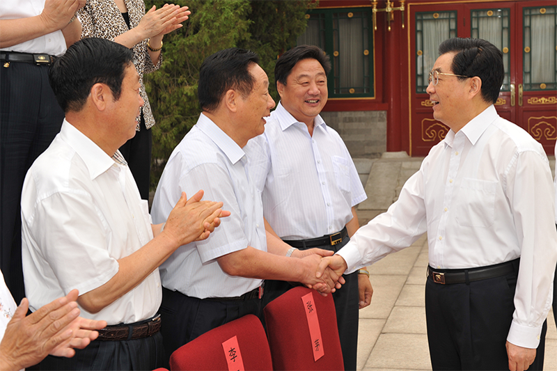 2010年6月30日,吴栋材同志在北京参加“深入开展创建先进基层党组织,争当优秀共产党员活动”座谈会,受到胡锦涛总书记的亲切接见。
